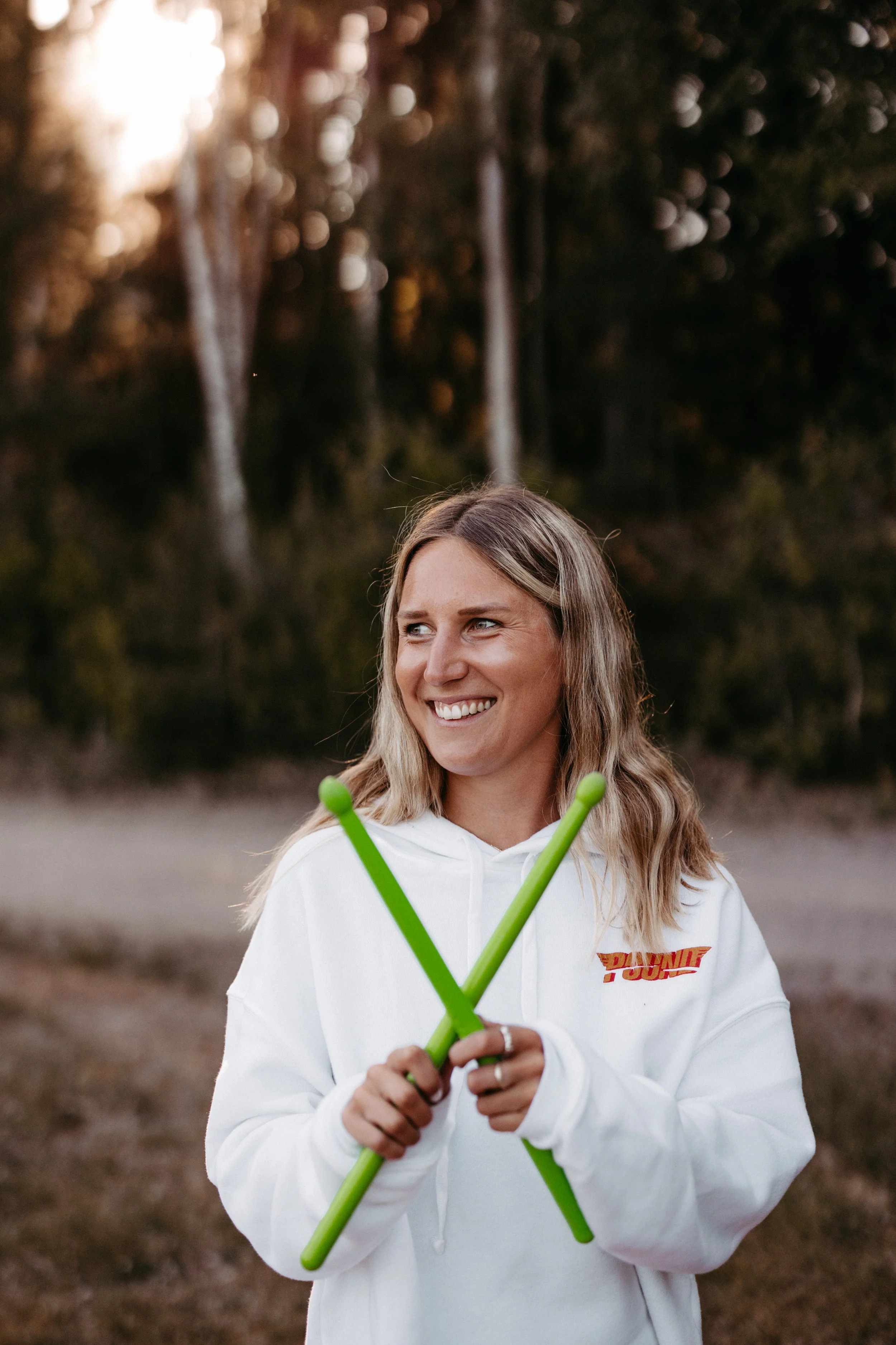 Hej! I’m Sara Nöjd, and my journey with POUND® began in 2020 back in my hometown of Ekenäs, Finland. While visiting from Switzerland, I joined classes taught by an inspiring instructor named Lotta. Something clicked. I found a workout that wasn’t just about fitness but also about confidence, fun, and connection.